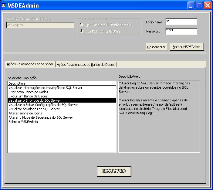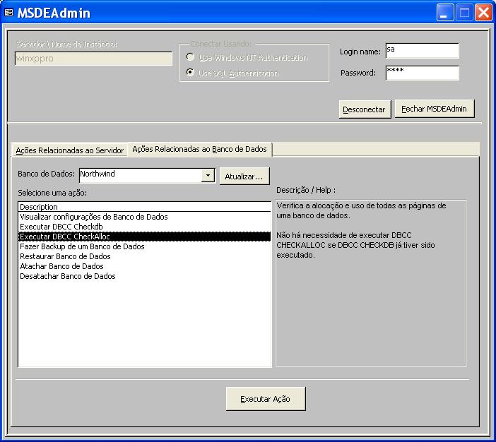 Com o MSDEAdmin é possivel executar as seguintes operações: