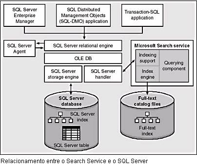 Full-text indexing: Deixa você criar e popular os catálogos (Full-text Catalogs), os quais são mantidos fora do SQL Server e gerenciados pelo Microsoft Search Service.