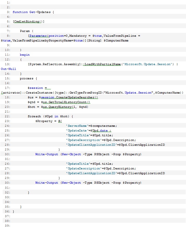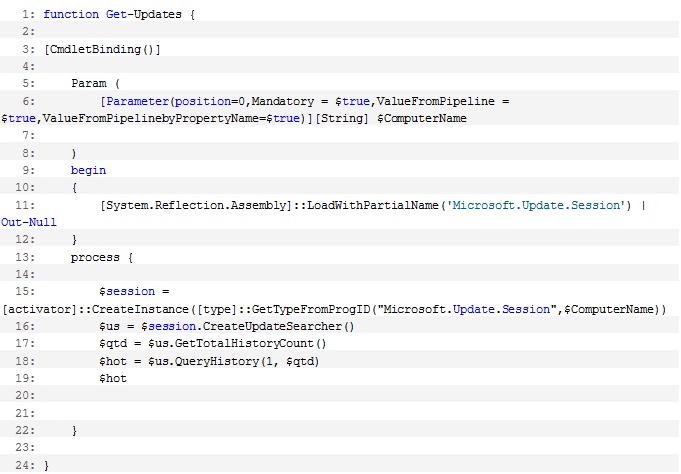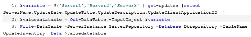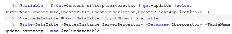 get-content c:/temp/servers.txt | get-updates | out-file c:/servers/audit.txt